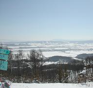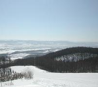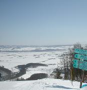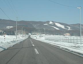 北海道らしい直線道路からの眺め。コンパクトにまとまった,南向きの斜面です。 でーも,気持ちのよい斜面が集まってますよ〜