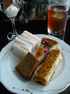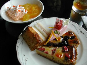 実はこれが敗因??おいしいんですがね〜。お皿の上はルバーブのタルト、ミルフィーユ、紅茶のパウンドです。