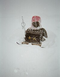 もともと晴天率の低い蔵王ですが、この日もあいにくの曇天。 …ということは、山頂部は嵐ってことです。これは山頂・三宝荒神山のお地蔵様です。 雪に埋まってますが、だいぶ顔を出していますね。 |
